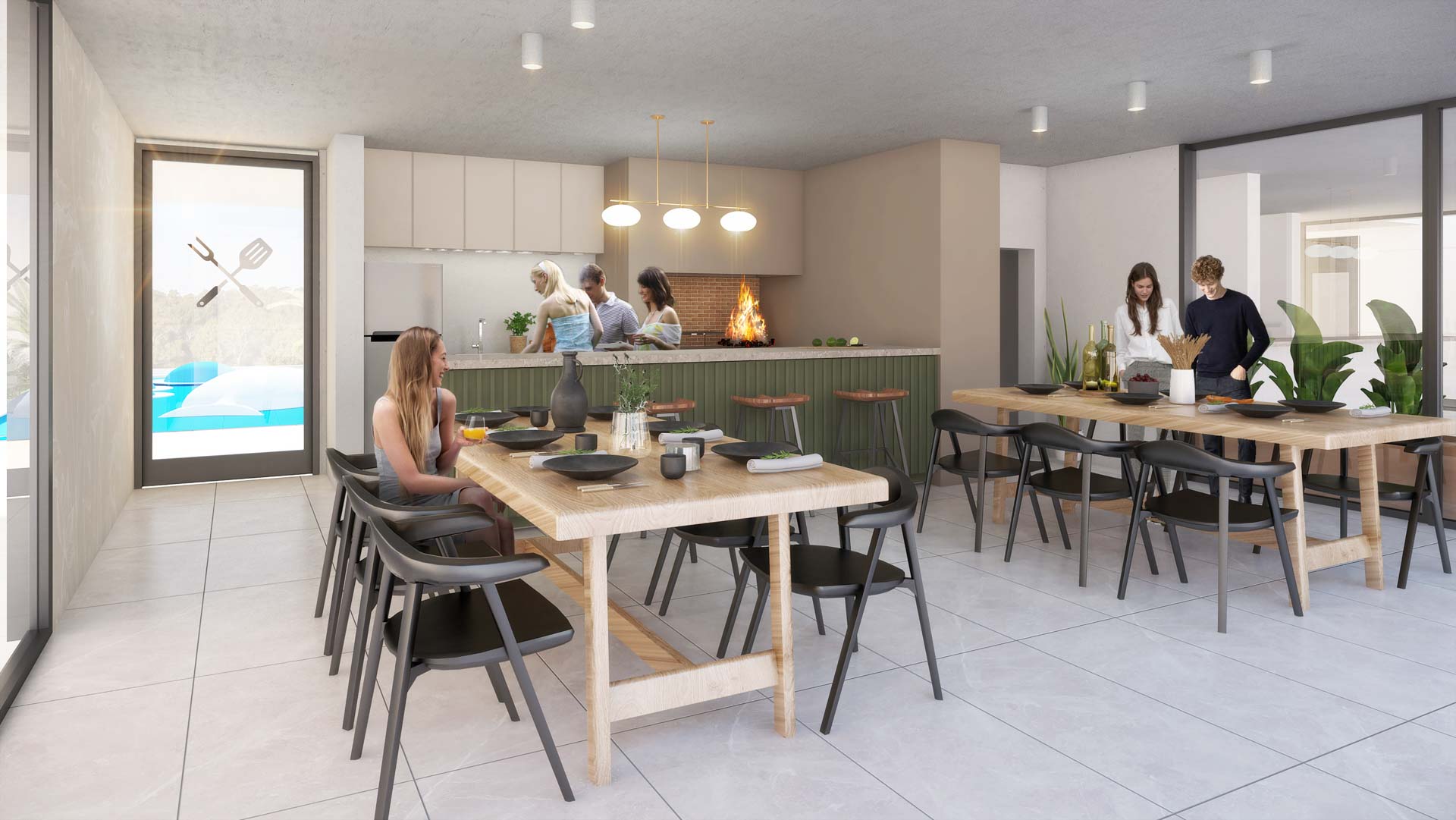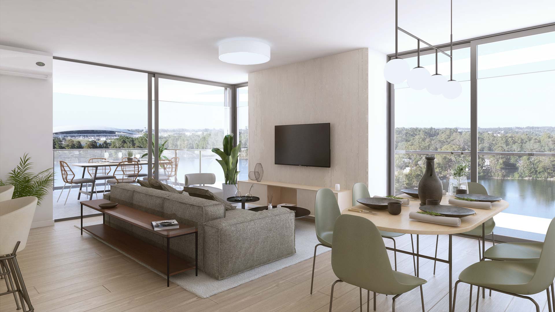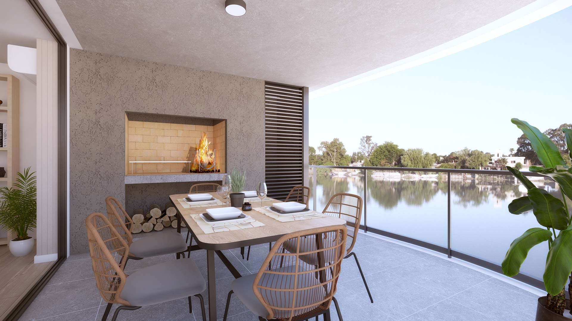 Entre las torres, se despliegan exclusivos amenities que conectan todas las torres. Esta área de enlace se ha diseñado con un esmerado cuidado proporcionando un recorrido único y atractivo sobre el lago Pesquero, que invitará a disfrutar de cada detalle del entorno.